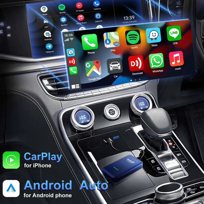 این دانگل به شما این امکان را میدهد که بدون سیم به مانیتور خودرو متصل شوید و از امکانات مسیریاب، موزیک و… در چهارچوب استاندارد کارپلی و اندروید اتو استفاده کنید.